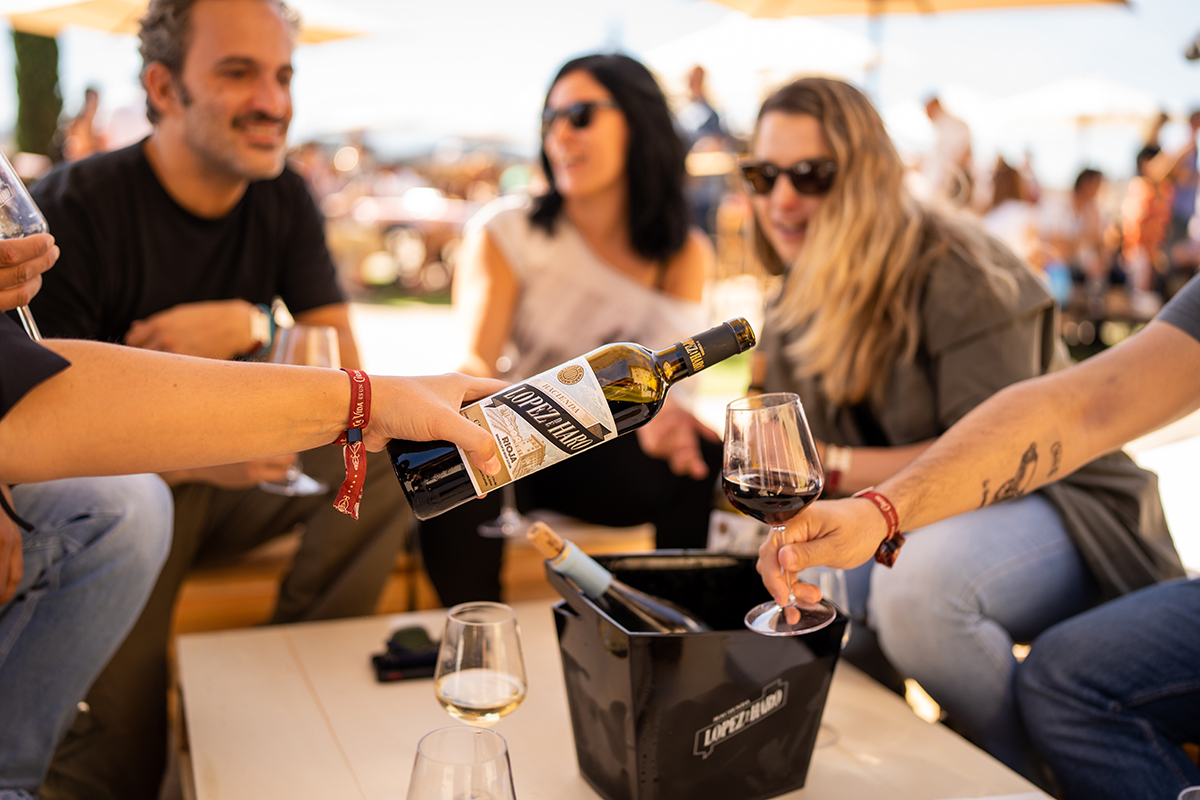 Después de la carrea y la marcha festiva vas a poder disfrutar en la Plaza Mayor de San Vicente de divertidos juegos relacionados con el mundo del vino, de animación musical, picoteo y degustación de los magníficos vinos Bodega Hacienda López de Haro.
